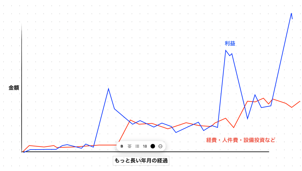 さらにグラフの中に蓄積される内部留保(個人で言えば蓄積される個人資産)の線を