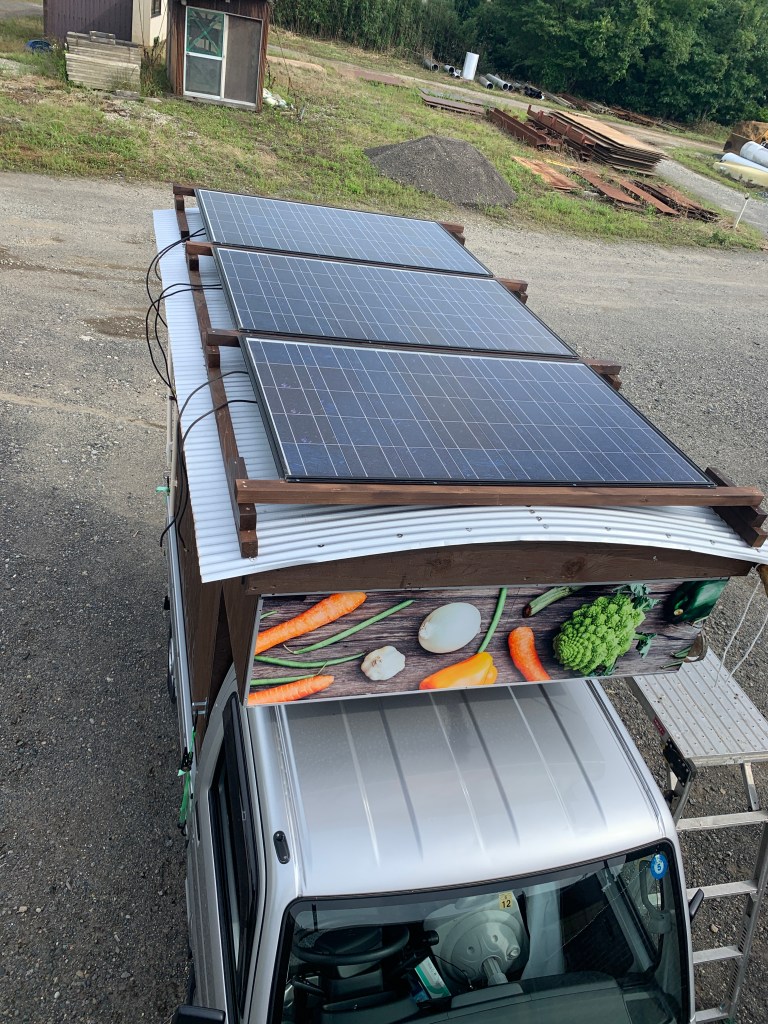 上昇工房で生産するキッチンカーのほとんどはソーラーバッテリーを搭載しています。
