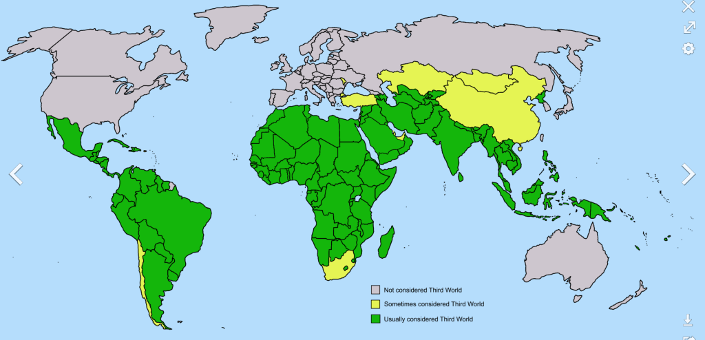 緑色は第三世界といわれる国々、黄緑色は多方面から第三世界に準ずると言える国です。