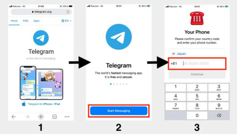 1.公式サイト<telegram.org>にアクセスし、アプリをダウンロード