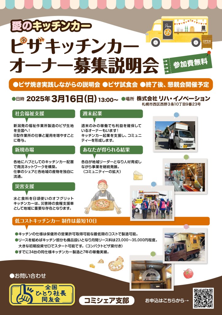 明後日16日は私ピザおじさんのキッチンカーセミナーです。